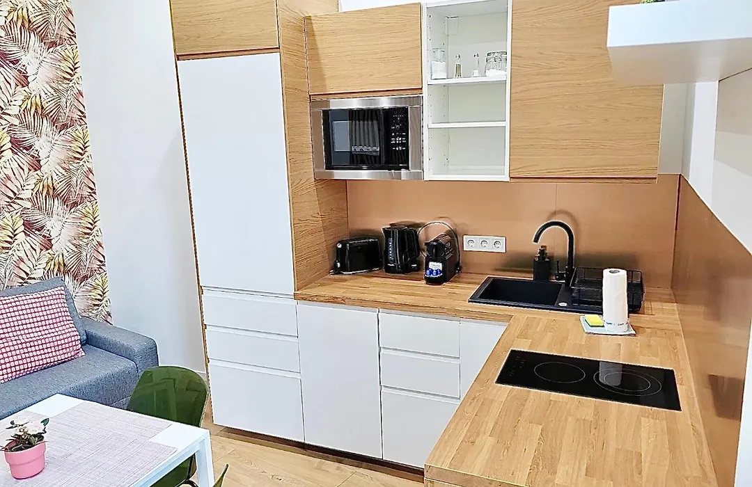 Apartament Rakoczi 374 I Boutique Flat I Free Parking posiada również kuchnię z lodówką, tosterem i płytą grzejną. 30 min jazdy samochodem od lotniska Budapeszt im. Ferenca Liszta oraz 2 km do stacji kolejowej Nyugati.
